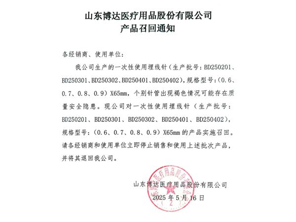 山東博達醫(yī)療用品股份有限公司是生產(chǎn)可吸收性外科縫線專業(yè)廠家,主要產(chǎn)品有可吸收縫合線 、內(nèi)窺鏡圈套線、可吸收外科縫線、快吸收美容線、醫(yī)用羊腸線 膠原蛋白線以先進的生物技術(shù)提取了健康哺乳動物內(nèi)臟的膠原蛋白為基材,采用先進的工藝加工而成,線體的主要成分為高純度膠原蛋白,并獲得了國家發(fā)明專利,頒布了YZB/國6301-2013《可吸收性外科縫線》產(chǎn)品標(biāo)準(zhǔn),并通過了ISO9001:2015和ISO13485:2016質(zhì)量管理體系認證。